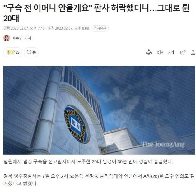 그러나 A씨는 곧 법정 밖으로 도망쳐 차량을 이용해 달아났다.