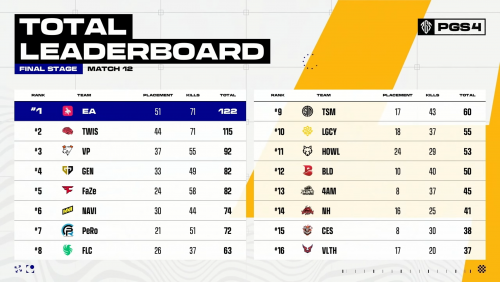 그룹 스테이지 상위 16개 팀은 6월 7일부터 9일까지 파이널 스테이지를 진행한다. 총 18매치를 통해 가장 높은 순위를 달성한 팀이 PGS 4의 챔피언으로 등극한다. PGS 4의 최종 순위에 따라 각 팀에게 올 연말에 열리는 최상위 국제 대회 'PGC 2024’에 출전을 위한 포인트가 부여된다.