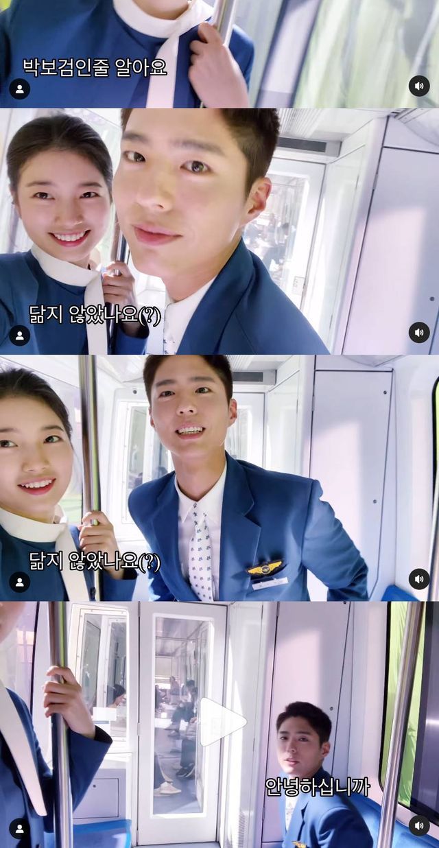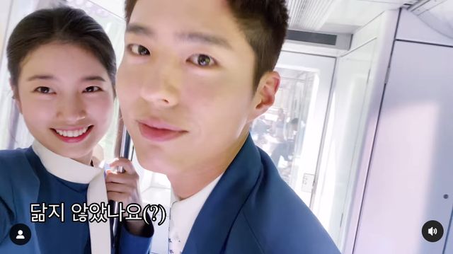 태주가 의식불명에 빠지기 전, 승무원 커플로 달달한 모습을 보이고 있는 장면을 촬영 중인 모습. 수지는 박보검에게 "안녕하세요 태주씨"라며 인사를 건넸다.