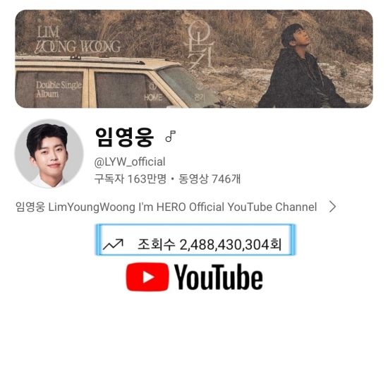 최근, 임영웅의 공식 유튜브 채널인 '임영웅'은 총조회수 24억 8천만 뷰를 돌파했다.
