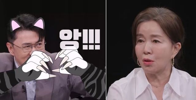 이 난감한 상황을 지켜보던 데프콘은 "만약에 임예진 선배님께서 남편의 외도 문자를 발견하신다면..."이라며 돌발 질문을 건넸다. 이에 임예진은 "발견한 즉시 남편을 가만 안 두죠. 죽여버려야지..."라며 깜찍한 처단 예고(?)로 김풍의 마음을 사로잡았다. 김풍은 "너무 귀여우시다"며 두 눈에 하트를 띄웠다.