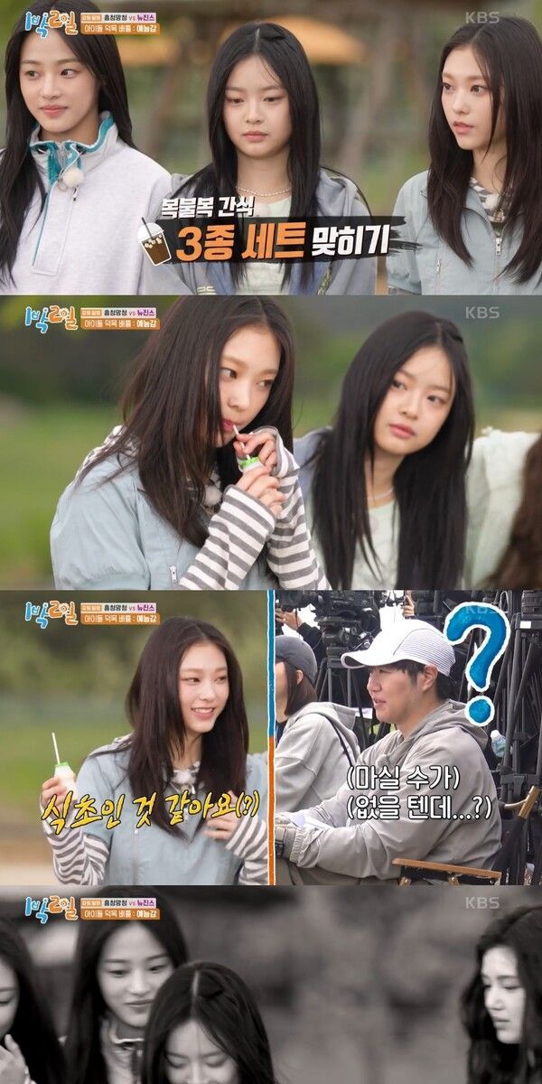 반면 식초를 한 입씩 맛본 하니와 민지는 적나라한 표정으로 해린과 대비되는 모습을 보였다. 이어 과감히 요구르트 한 개를 고른 민지는 식초인 것을 알아채자 단번에 뱉어버려 현장을 폭소케 했다.