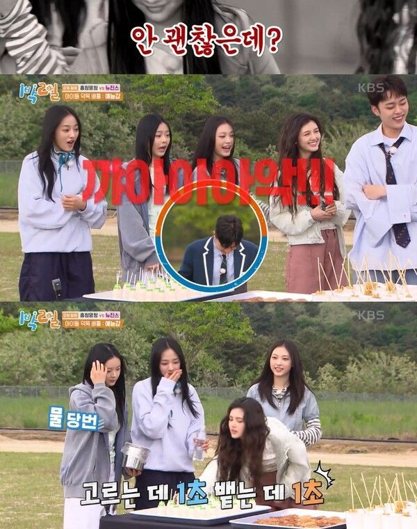 지난 9일 방송된 KBS2 '1박 2일 시즌4'에는 게스트로 뉴진스가 함께했다. 발등 부상으로 쉬고 있는 혜인을 제외한 민지, 하니, 다니엘, 해린이 출연했다.