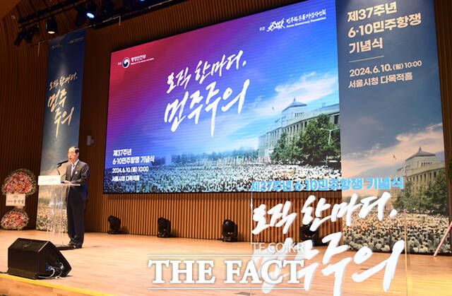 한덕수 국무총리는 기념사에서 "6.10 민주항쟁의 고귀한 정신은 우리가 계승하고 발전시켜야 할 소중한 유산"이라며 "우리 정부는 더욱 성숙한 민주주의를 바탕으로 자유롭고 정의로운 나라, 평화롭고 번영한 나라를 이루는 데 최선을 다하고 있다"고 밝혔다.