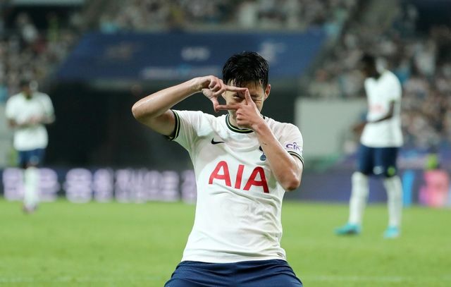 토트넘 홋스퍼의 손흥민이 2022년 7월 13일 오후 서울 마포구 상암동 서울월드컵경기장에서 열린 쿠팡플레이 시리즈 팀 K리그와의 경기에서 후반 두 번째 골을 넣은 후 찰칵 세리머니를 하고 있다. / 뉴스1