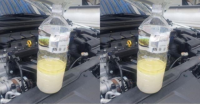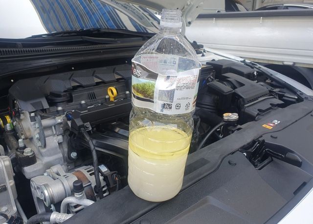 피해 차량에서 빼낸 휘발유와 물이 혼합된 모습 / 연합뉴스