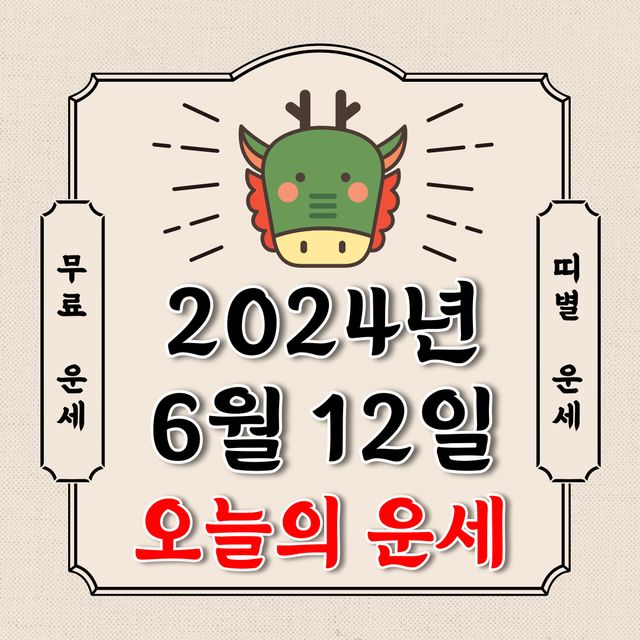 오늘의 운세 2024년 6월 12일 수요일 (음력 5월 7일 / 띠별 운세 / 생년월일 운세)에 대해 알아 보겠습니다.