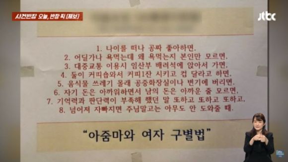 해당 헬스장은 '아줌마와 여자 구별법'이라는 게시물도 부착했다. △나이를 떠나 공짜를 좋아하면 △어딜가나 욕먹는데 왜 욕먹는지 모르면 △대중교통 이용시 임산부 배려석에 앉으면 △커피숍에서 커피 1잔 시키고 컵 달라고 하면 등 일부 중년 여성을 비판하는 내용이 담겼다.