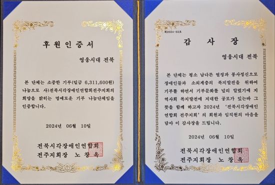 전북 시각장애인 협회는 비영리 단체로, 300여 명의 회원에게 도움을 주고 있다 전주 시각장애인 협회 노창옥 지회장은 "보이지는 않지만, 임영웅의 노랫소리를 들으면 포근하고 따뜻한 온기를 느꼈다"라며 "팬분들이 임영웅 가수의 따뜻함을 닮아 좋은 일에 앞장서주어 정말 고맙고 감사하다"라고 전했다.