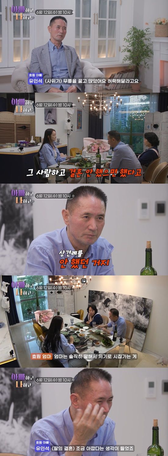 부친은 "조금 아깝다는 생각이 들었다. 남한테 준다는 생각이다. 딸을 빼앗기는 기분에 좀 서운했다"며 서효림의 결혼에 느낀 감정을 고백했다.