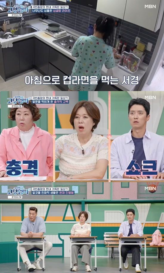 이어 짠내 나는 싱글맘 라이프를 확인했다. 깔끔한 거실이라 MC들로 합격을 받았지만, 가스레인지가 아닌 휴대용 버너를 사용하는 모습이 의아함을 안겼다. 이에 맹서경은 "가스비 장기 연체가 생겨서 끊겨서 가스레인지 사용이 어렵다"고 했다. 또, 아침에 컵라면을 먹고, 점심 저녁은 패스하거나 편의점에서 간단히 먹고 있다고 했다.