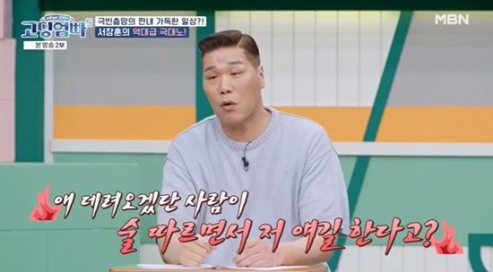 서장훈은 "어떤 리액션 해야할지 모르겠다. 애 데려오겠단 사람이 술 따르면서 저 얘길 한다고? 이렇게 해서 어느 세월에 알코올 중독에서 벗어나냐. 뱉는 말과 행동이 너무 다르다"며 극대노했다.