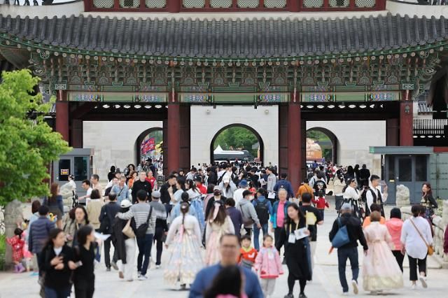 上月15日,景福宫游客人山人海。【图片提供 韩联社】