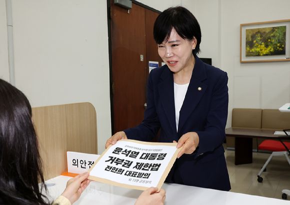 그는 "지난 2년 동안 윤 대통령은 14개의 법률안에 대해 거부권을 행사했다"며 "집권 여당은 국회의 입법권을 침해하고 헌법상 삼권분립 원칙을 형해화시키고 있는 윤 대통령의 무소불위 거부권 행사에 대해 입법부로서의 행정부에 대한 견제 역할을 하기는커녕, 오히려 너도나도 충성 경쟁에만 매몰돼 있는 안타까운 현실"이라고 지적했다.