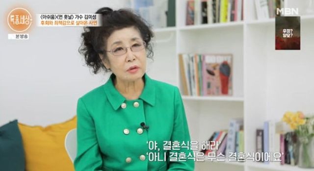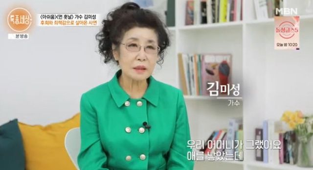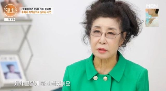 마흔이 다 된 나이에 가수로 데뷔해 입지를 탄탄히 굳혔다는 김미성은 TV에서 단란한 가족들이 나올 때 부럽다며 “나는 왜 저런 것을 몰랐을까. 너무 노래에만 치우치고 살았구나, 후회를 많이 하고 있다”라고 털어놨다.