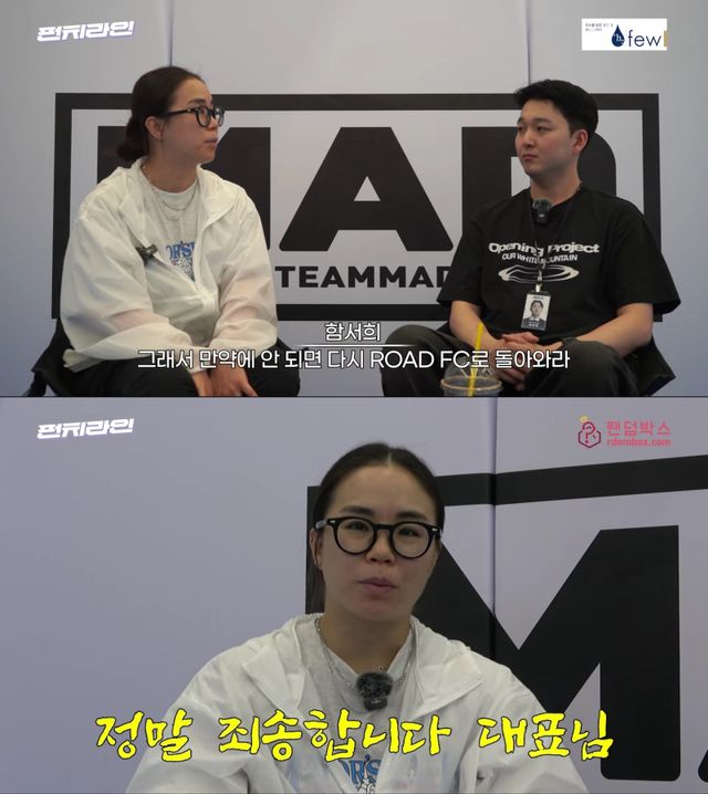 함서희는 펀치라인을 통해 ““UFC에서 나오고 나서 (선수를) 그만두려고 했다. 고등학교 때부터 모든 인생을 격투기에 바쳤는데 ‘내 인생은 끝났구나’ 생각했다. 이런 시점에서 정문홍 대표님께서 잡아주셨고, 챔피언이 아니었는데도 챔피언 대우를 해주시는, 로드FC 통틀어서 제일 높은 파이트머니를 제시해 주셨던 걸로 알고 있다.”고 말했다.