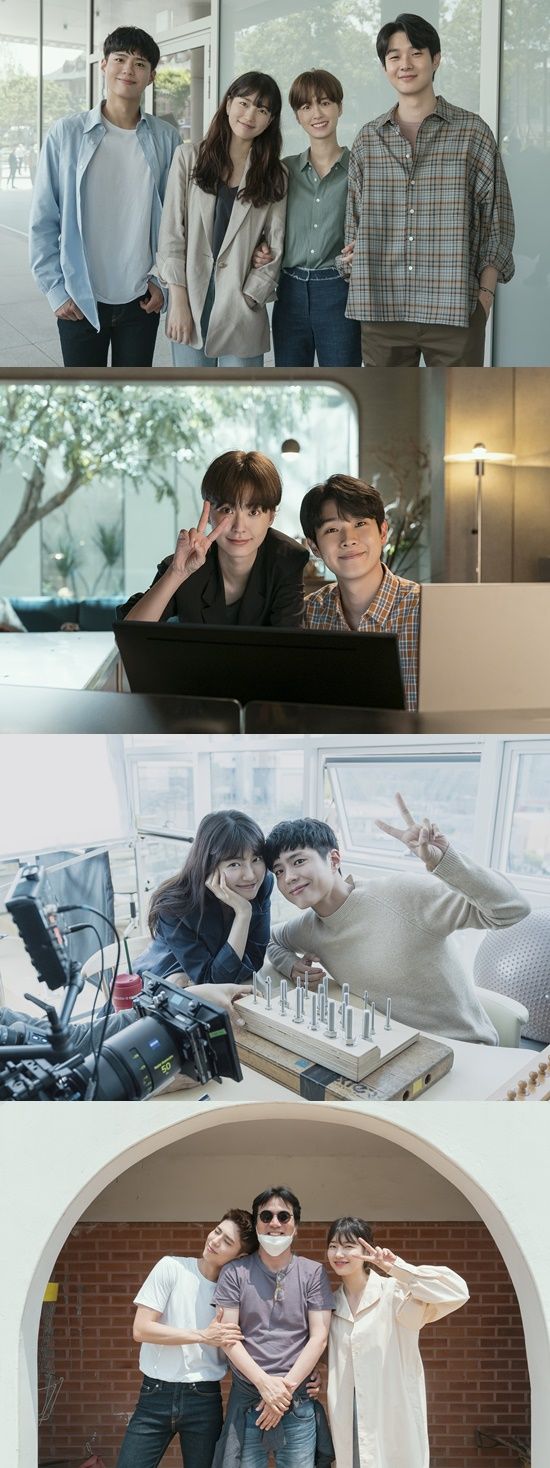 '원더랜드' 서비스를 설계하는 플래너 콤비 해리와 현수로 분해 촬영하는 동안 서로 의지하며 '찐친'의 모습을 보여준정유미와 최우식부터 애틋한 연인 정인과 태주로 출연해 첫 연기 호흡을 맞춘 수지와 박보검까지 화기애애한 촬영 현장에서의 모습을 통해 영화 속 그들의 빛나는 조화를 짐작하게 한다.