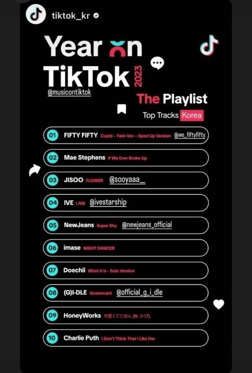 틱톡 탑트랙 코리아 플레이리스트 (출저=틱톡)
