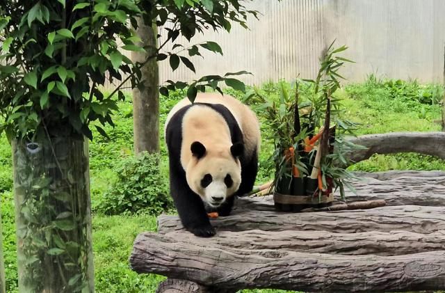 12日,“福宝”在四川卧龙中华大熊猫苑神树坪基地与公众见面。从室内生活空间出来的福宝,走到室外放养区,迎接前来参观的游客。“福宝”的照片在社交媒体上传开后,粉丝们纷纷表示“很高兴能再次见到‘福宝’”,“要去成都看‘福宝’”。