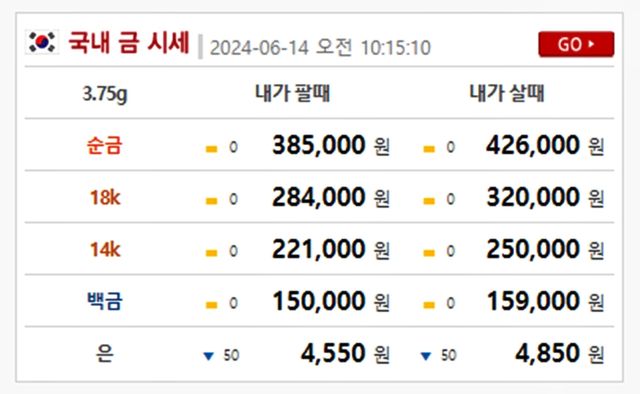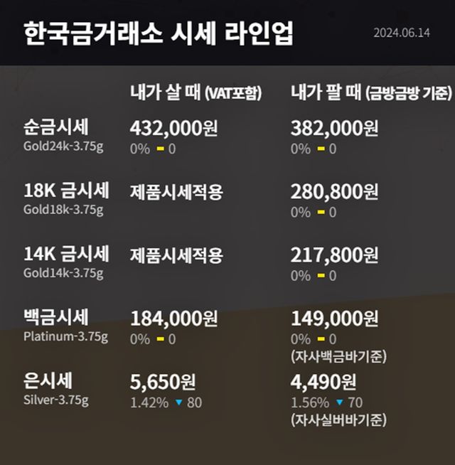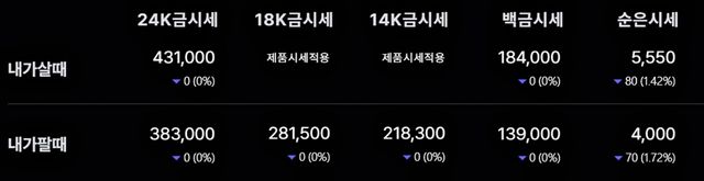 순금(24K) : 매입가 42만 6000원 / 매도가 38만 5000원