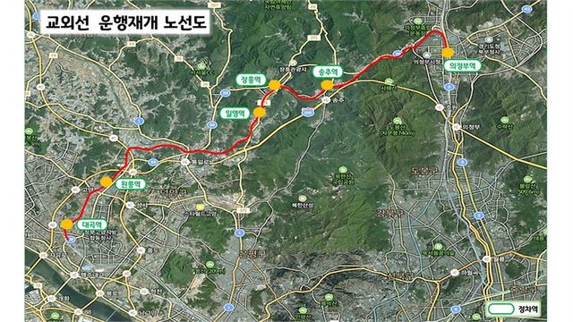 경기 북부권역을 동~서로 연결하는 교외선은 1963년 8월 설치된 뒤 관광·여객·화물 운송 등에 활용됐으나 2004년 운행 적자를 이유로 운행이 중단되었다.