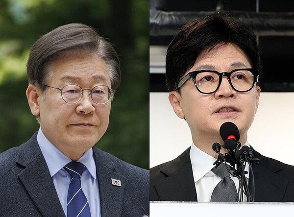 대전/세종/충청은 이재명 16%·한동훈 22%, 광주/전라 이재명 36%·한동훈 5%로 나타났다. PK에서는 이재명 20%·한동훈 19%, 대구/경북에서는 이재명 13%·한동훈 25%로 나타났다.