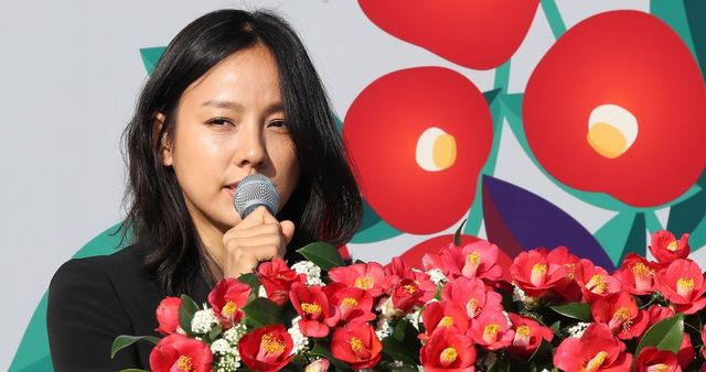 제주 4·3 70주년 추념일인 2018년 4월 3일 제주시 봉개동 4·3 평화공원에서 가수 이효리가 추념식 내레이션 리허설을 하고 있다. / 뉴스1