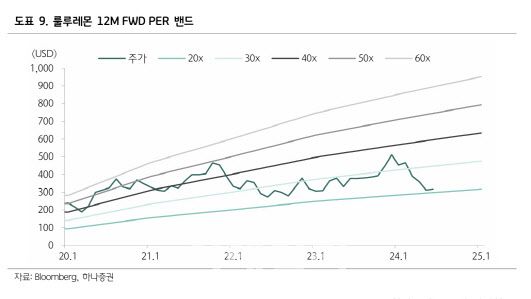 15일 김재임 하나증권 연구원은 보고서를 통해 “룰루레몬은 2024년 매출 가이던스를 기존 107억~108억 달러로 유지했다”며 “기능성 신규제품 2분기 출시, 생삭과 사이즈별 수급개선, 3분기부터 최적화 재고 수준 달성을 바탕으로 하반기 매출 성장이 기대된다고 예상했다”고 말했다.