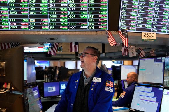 뉴욕증권거래소(NYSE)에서 근무 중인 트레이더의 모습. ⓒ 연합뉴스