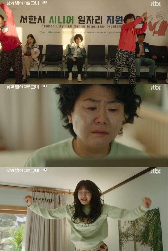 15일 첫 방송된 JTBC 새 토일드라마 '낮과 밤이 다른 그녀' 1회에서는 이미진(정은지 분)이 임순(이정은)의 몸으로 살게 된 모습이 그려졌다.