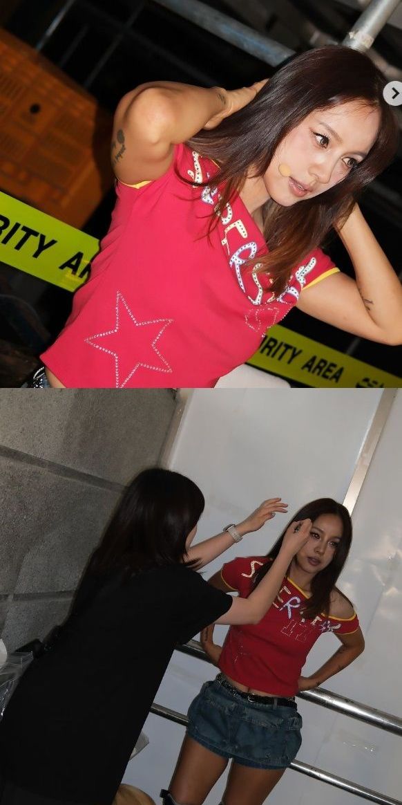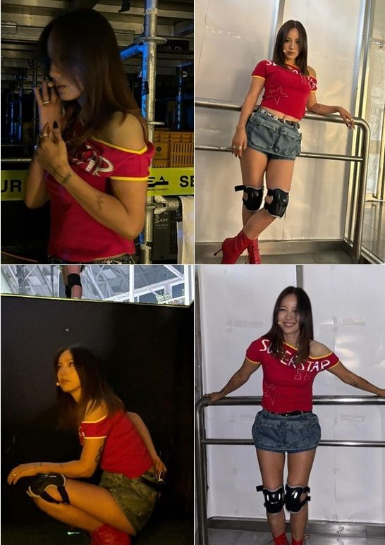 2003년 발매한 히트곡 '텐미닛' 활동 당시로 착각하게 만들 정도로 변함없는 이효리의 방부제 미모와 크롭 오프숄더와 미니 데님 스커트를 완벽히 소화한 탄탄한 몸매가 감탄을 자아낸다.