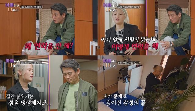 부녀의 말다툼에 집안 분위기는 점점 냉랭해졌고, 김경선은 "나를 못 믿어서 계속 연락을 하는 건가 싶다"라며 눈물까지 보이고 말았다. 과연 김병옥 부녀가 냉전을 깨고 다시 화해할 수 있을지 많은 이들의 관심이 모아진다.