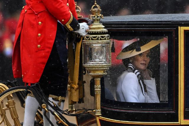 케이트 왕세자빈은 세명의 자녀와 함께 덮개가 있는 마차를 타고 행사장에 참석했다. 이날 영국은 폭우가 내리는 궂은 날씨였지만 군중들은 마차가 지나갈 때마다 손을 흔들며 환호했다.