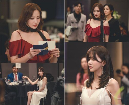 16일 공개된 스틸에는 과거 모녀 사이였던 문정인과 그녀로 인해 어린 시절 불행을 겪은 백설아가 ‘포커페이스’ 종방연 현장에서 마주한 모습이 담겨 있다. 과거 정인의 만행으로 아버지를 잃고 세상에 혼자 남겨진 설아는 그녀에 대한 복수를 다짐한다. 성인이 된 설아는 드라마 ‘포커페이스’를 집필하고, 이후 두 사람은 제작사 대표와 드라마 작가로 만나게 된다.