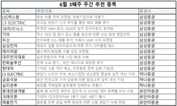 16일 금융투자업계에 따르면 삼성증권은 LIG넥스원, 대주전자재료, LS ELECTRIC, SK하이닉스, 삼성전자, 현대차, 기아 등을 추천 종목으로 제시했다.