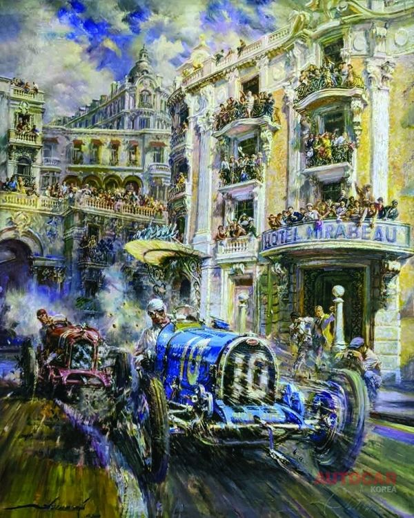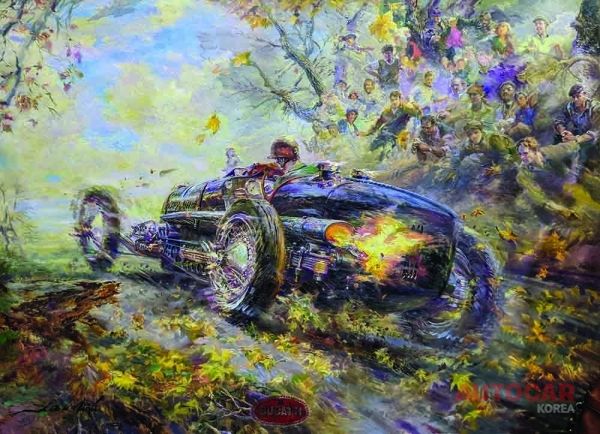 1906년 밴더빌트 컵(Vanderbilt Cup)에서 강력한 로레인-디트리히(Lorraine-Dietrich)를 타고 먼지 가득한 롱 아일랜드 트랙을 질주하는 아서 듀레이(Arthur Duray)나 황혼의 르망 피트에서 긴장한 필 힐(Phil Hill)의 모습 등 알프레도 데 라 마리아(Alfredo de la Maria)의 웅장한 그림은 정말 매혹적인 감각을 지니고 있다. 남미의 거장은 상상력이 풍부한 관중, 사실적인 주차장 디테일, 화려한 건축물로 분위기를 한층 더 고조시킨다. 극적인 조명과 결합된 이 작품들은 관객을 끌어당기는 영화 같은 퀄리티를 자랑한다.