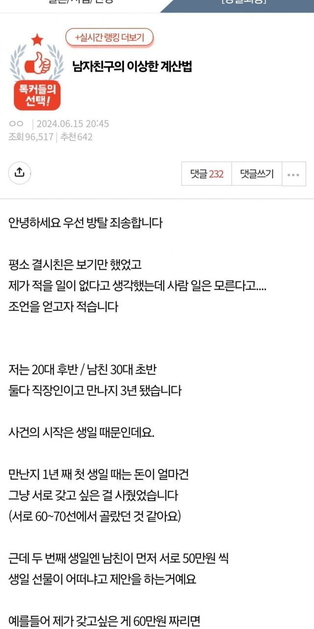 남자친구의 이상한 계산법