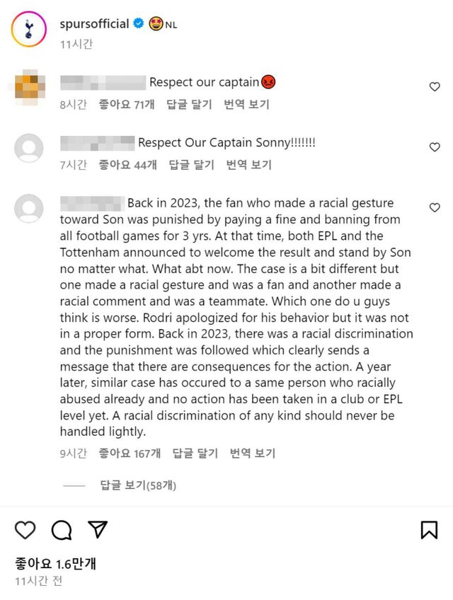 이에 화가 난 손흥민 팬들은 토트넘 공식 SNS에 "캡틴을 존경해라", "아시아투어 취소해라", "계속 이렇게 덮으려고 하네", "손흥민에게 무슨 일이 일어나고 있는지 매우 안타깝다.", "시간이 지나면 잊힐 거로 생각했다면 착각입니다", "지금 아시아 팬들이 분노하고 있다.", "한국인과 동양인을 차별하는 팀이다.", "토트넘과 우루과이가 쏘니에게 사과하지 않으면 아시아인 전체가 보이콧을 선언해야 한다.", "슬프다. 벽에 대고 말하는 기분이다. 토트넘 팬으로서 부끄럽다." 등 분노의 댓글을 남겼다.