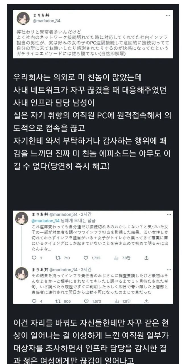 컴퓨터 고장 원인은 다양할 수 있습니다. 소프트웨어 문제, 하드웨어 결함, 네트워크 문제 등을 포함합니다. 여직원의 컴퓨터만 빈번하게 고장난다면, 그 원인을 꼼꼼히 분석하는 것이 중요합니다.