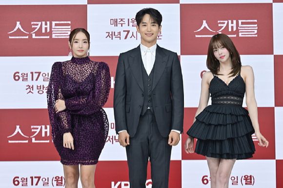KBS '스캔들' 제작발표회에 참석한 배우 한채영 최웅 한보름 [사진=KBS ]