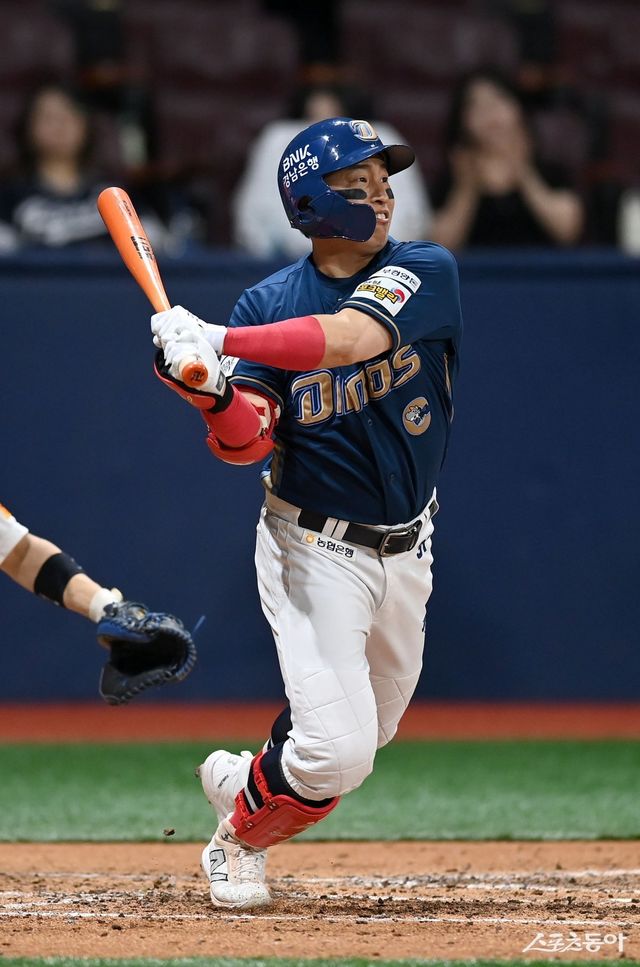 손아섭의 현재 통산 안타는 2501개. 박용택의 2504개와는 단 3개 차. 4개만 더 때리면 한국 프로야구 통산 안타 1위에 오를 수 있다.