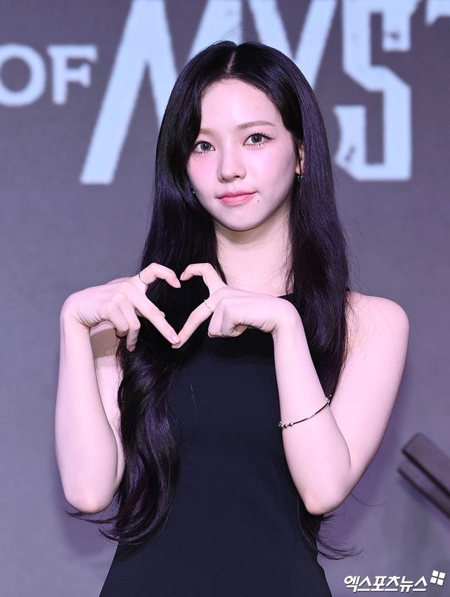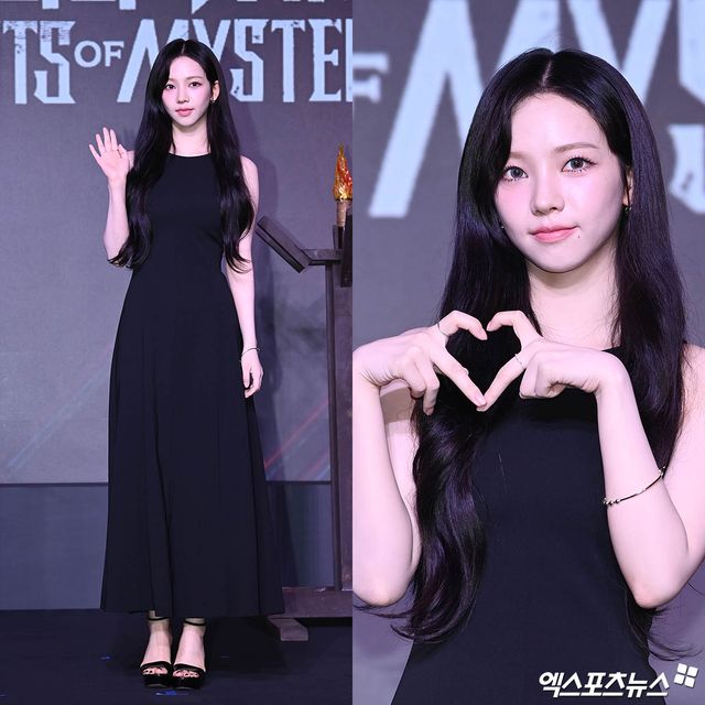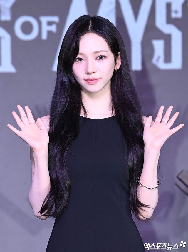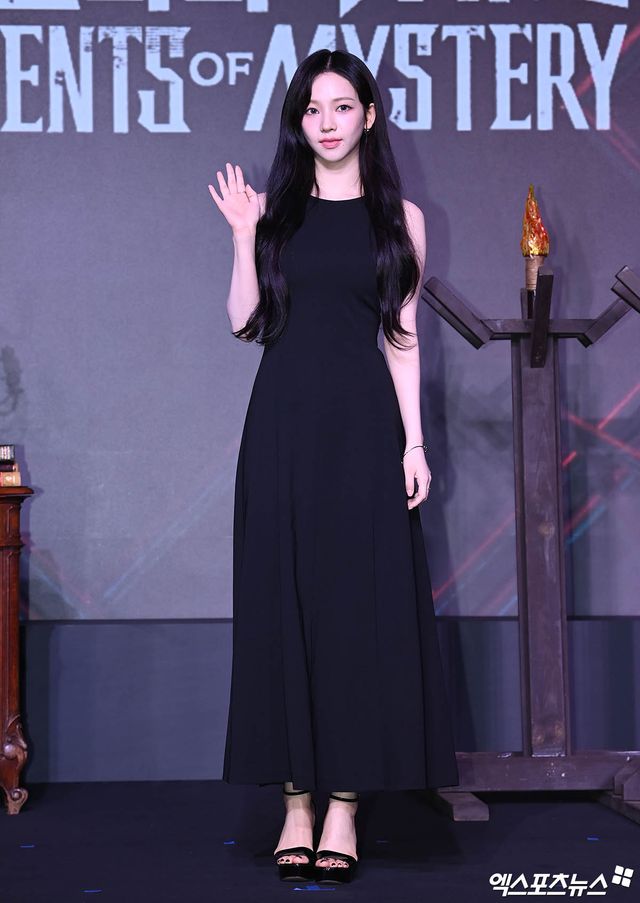 이날 제작발표회에 참석한 에스파 카리나가 포토타임을 갖고 있다.