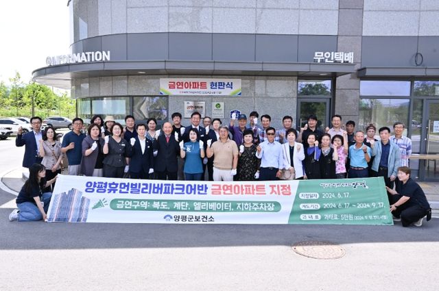 [파이낸셜경제=김영란 기자] 양평군이 17일 양평 휴먼빌 리버파크어반 아파트를 양평군 제4호 금연 아파트로 지정하고 현판식을 가졌다.