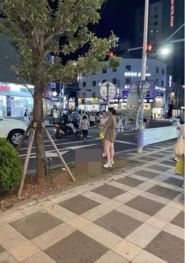 제주도에서 중국인으로 추정되는 아이 엄마가 길거리에서 아이에게 대변을 보게 해 충격을 안기고 있다.
