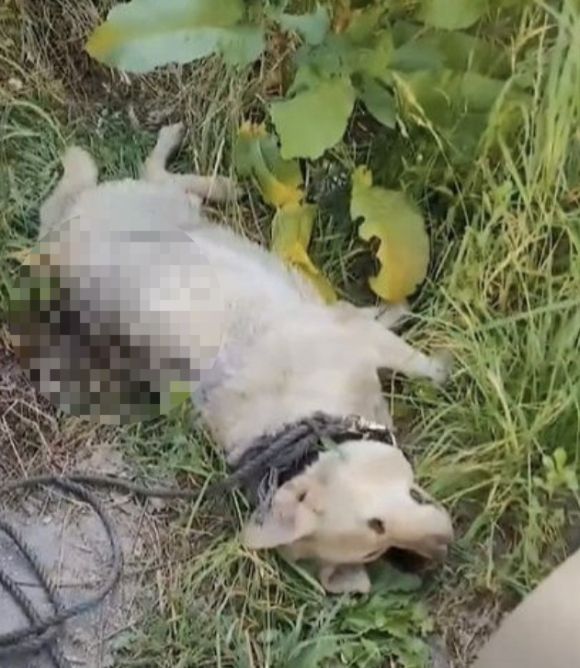 단체가 공개한 영상을 보면 차량이 주차되어 있는 뒤편에 목줄을 찬 리트리버 한 마리가 옆으로 누워있다. 리트리버는 숨을 헐떡이고 있고, 엉덩이와 등 쪽에는 수십 마리의 구더기가 살을 파고들어 우글거리는 모습이다.