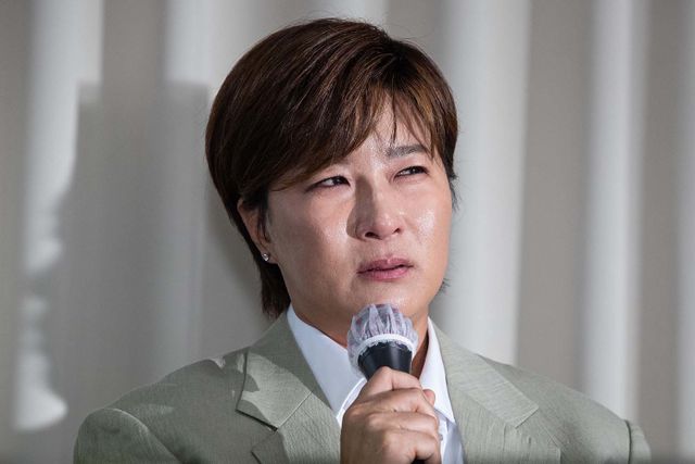 박세리 박세리희망재단 이사장이 18일 서울 강남구 스페이스쉐어 삼성코엑스센터에서 기자회견을 열고 자신의 부친 고소와 관련 입장을 밝히던 중 눈물을 참고 있다. 앞서 재단은 지난 11일 박세리의 부친 박준철 씨를 사문서 위조 및 위조사문서행사 혐의로 고소했다. 박 씨 부친은 국제골프학교 설립 업체로부터 참여 제안을 받고 재단의 법인 도장을 몰래 제작해 사용한 혐의를 받는다. / 뉴스1