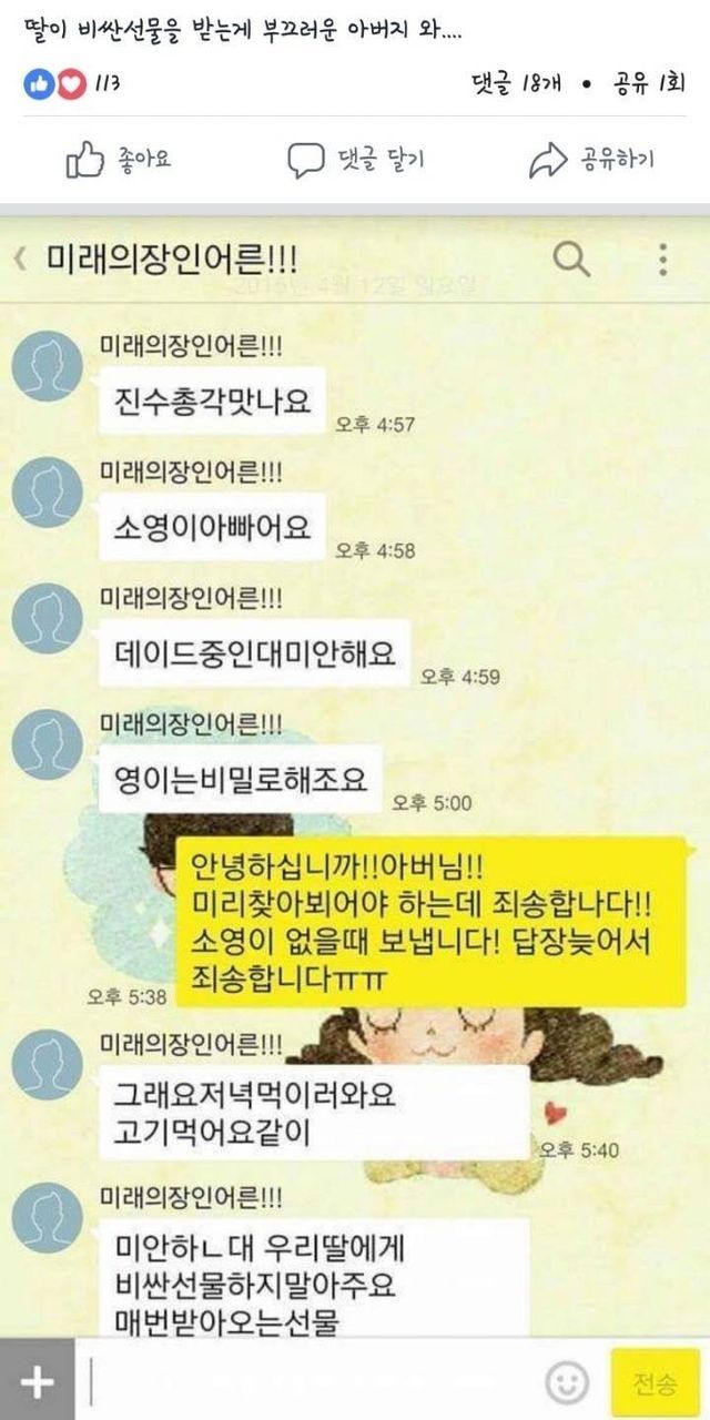 딸이 비싼 선물 받는게 부끄러운 아버지..