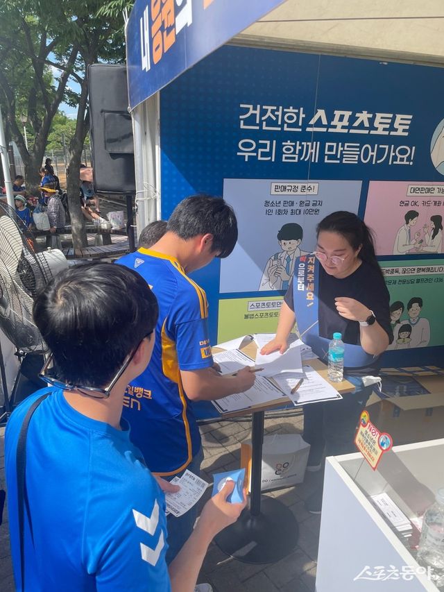 스포츠토토 무료체험 현장 행사는 경기장 출입구 주변에 스포츠토토 홍보 부스를 방문해 현장에 배치된 QR코드를 통해 스포츠토토 공식 인터넷 사이트 베트맨 회원 가입을 하거나, 스포츠토토 공식 SNS 채널의 구독 및 팔로우 완료가 확인되면 1000원의 투표권 및 사은품을 증정하는 방식으로 진행됐다.
