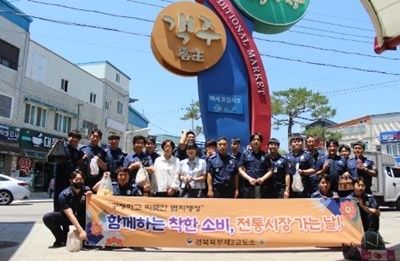 경북북부제2교도소(소장 이영성)는 18일(수) 경북2교 직원들 20명과 함께 진보 객주전통시장을 방문하여 ‘전통시장 가는 날’ 행사를 가졌다. / 사진제공=경북북부제2교도소
