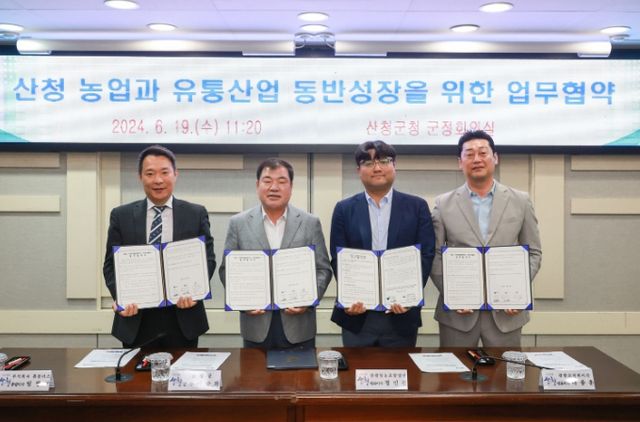 19일 산청군은 군청 군정회의실에서 ‘산청농업과 유통산업 동반성장을 위한 업무협약식’을 가졌다고 밝혔다.
